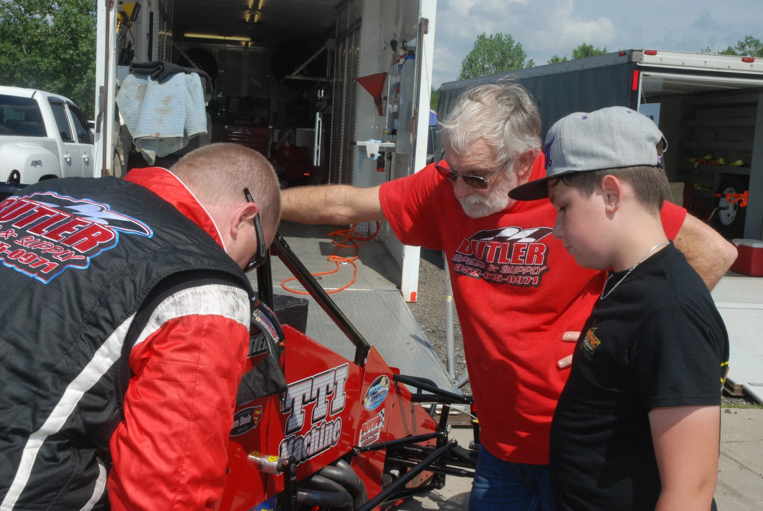 Stan, Shane, and Landon Butler in the pits prior to the 2023 Little 500.