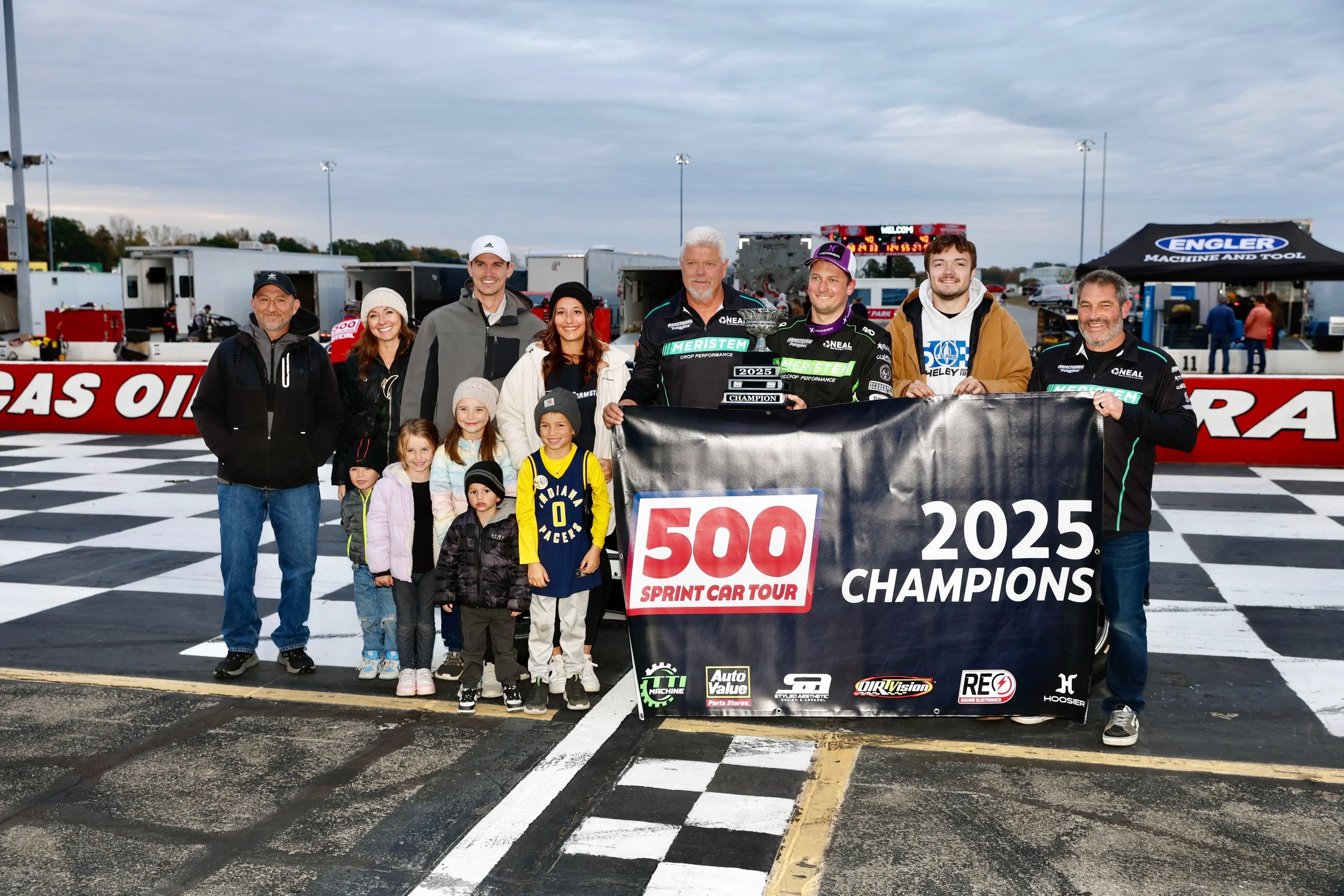 Dakoda Armstrong and team in victory lane after winning the 2025 Championship - Rick Kimball Photo
