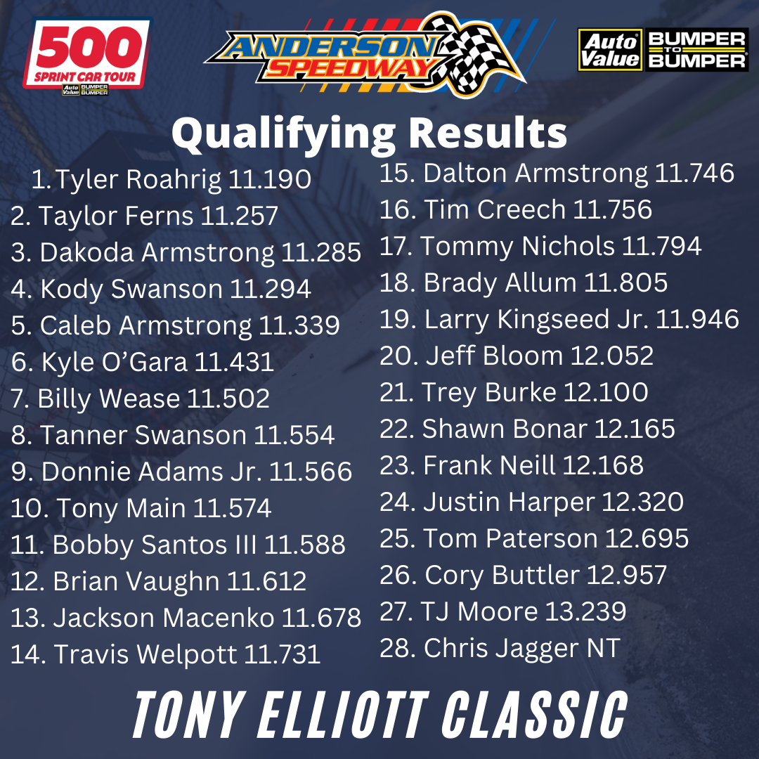 Race Results Lucas Oil Indianapolis Raceway Park - October 15, 2023 Anderson Speedway - October 7, 2023 Lorain Raceway Park - September 9, 2023 Nashville Fairgrounds Speedway - July 29, 2023 Berlin Raceway - July 22, 2023 Anderson Speedway - July 8, 2023 Toledo Speedway - June 18, 2023 Berlin Raceway - June 10, 2023 Glen Niebel Classic - Anderson Speedway - April 8, 2023
